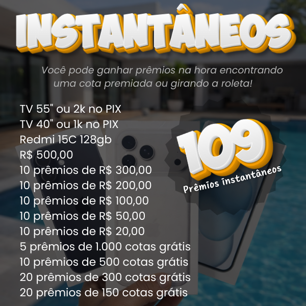 Cotas premiadas O sistema gera suas cotas de forma aleatória e você pode ganhar prêmios na hora!